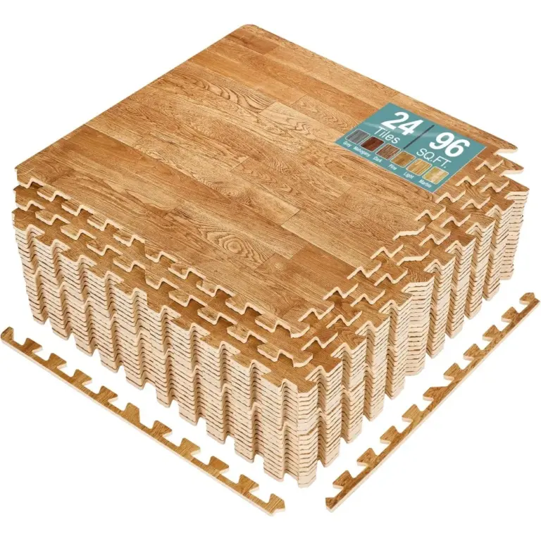 12 Tiles (48 Sq Ft) Wood Grain Floor Tiles Foam Mat, 3/8-Inch Thick Flooring Wood Puzzle Exercise Mats W/Borders, Tiles Foam Mat