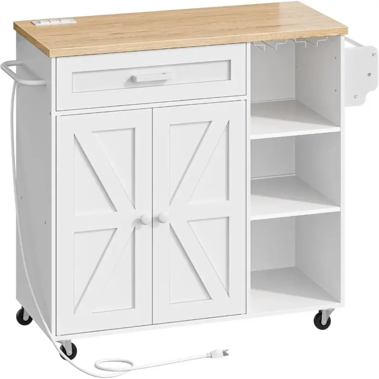 Kitchen Island Trolley with Power Outlet, Spice Rack, Rolling Storage Cart with Drawer, Versatile Island Table with Cabinet