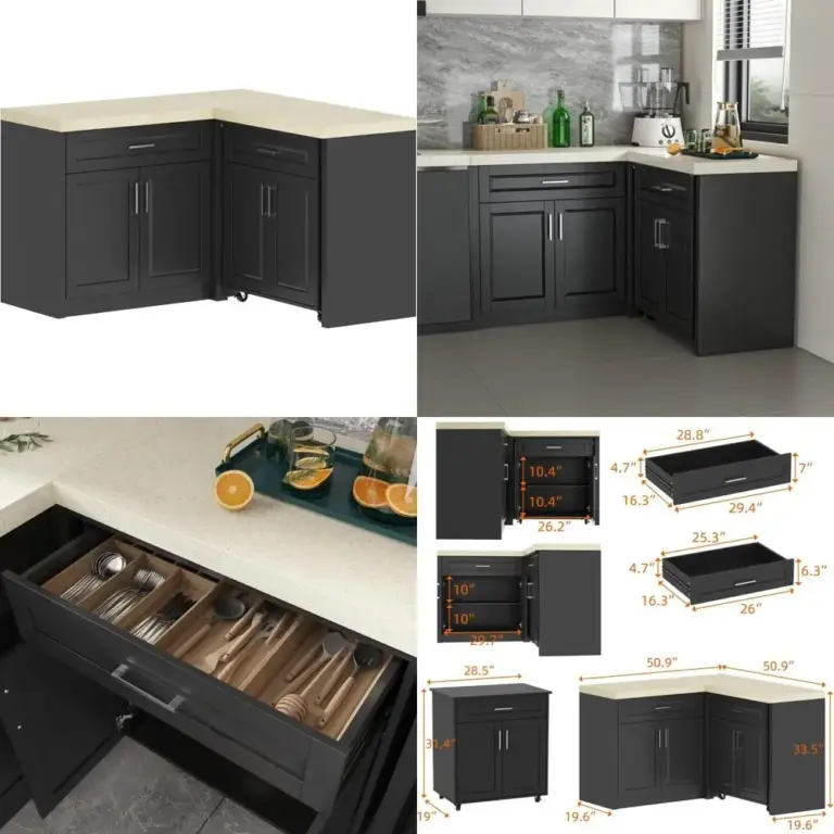 l-shape kitchen pantry cabinet with wheels and drawers, corner pantry storage cabinet with doors, hidden cart, cupboard with bei