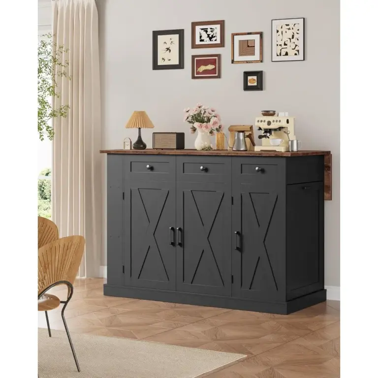 Movable Kitchen Island Table with Foldable Top, Kitchen Island Cart with Storage, Trash Bin Cabinet, 2 Drawers