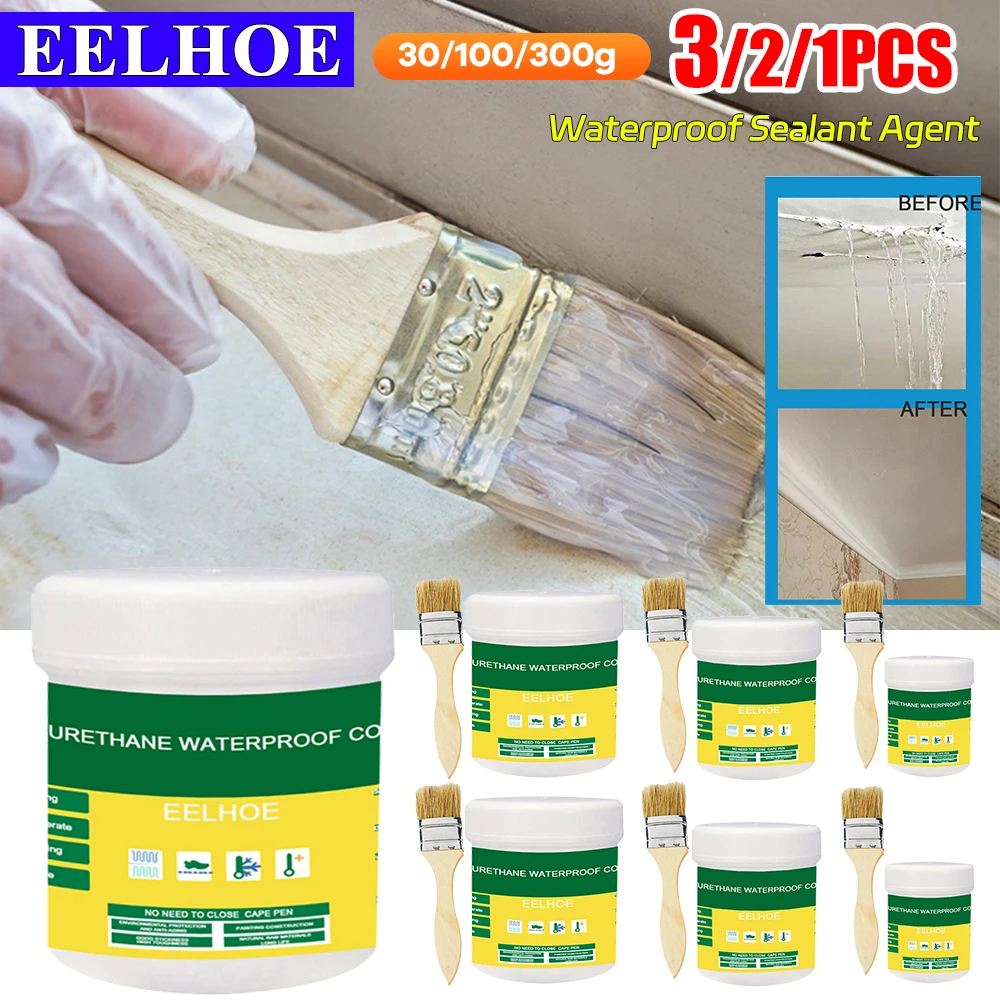 30/100/300g Transparent Waterproof Agent Waterproof Coat Mighty Paste Polyurethane with Brush Invisible Paste Sealant for Home for Roof Bathroom