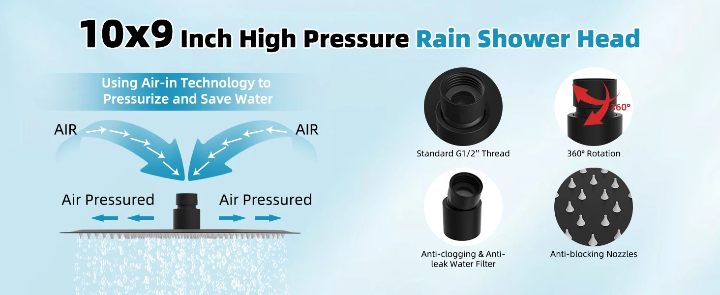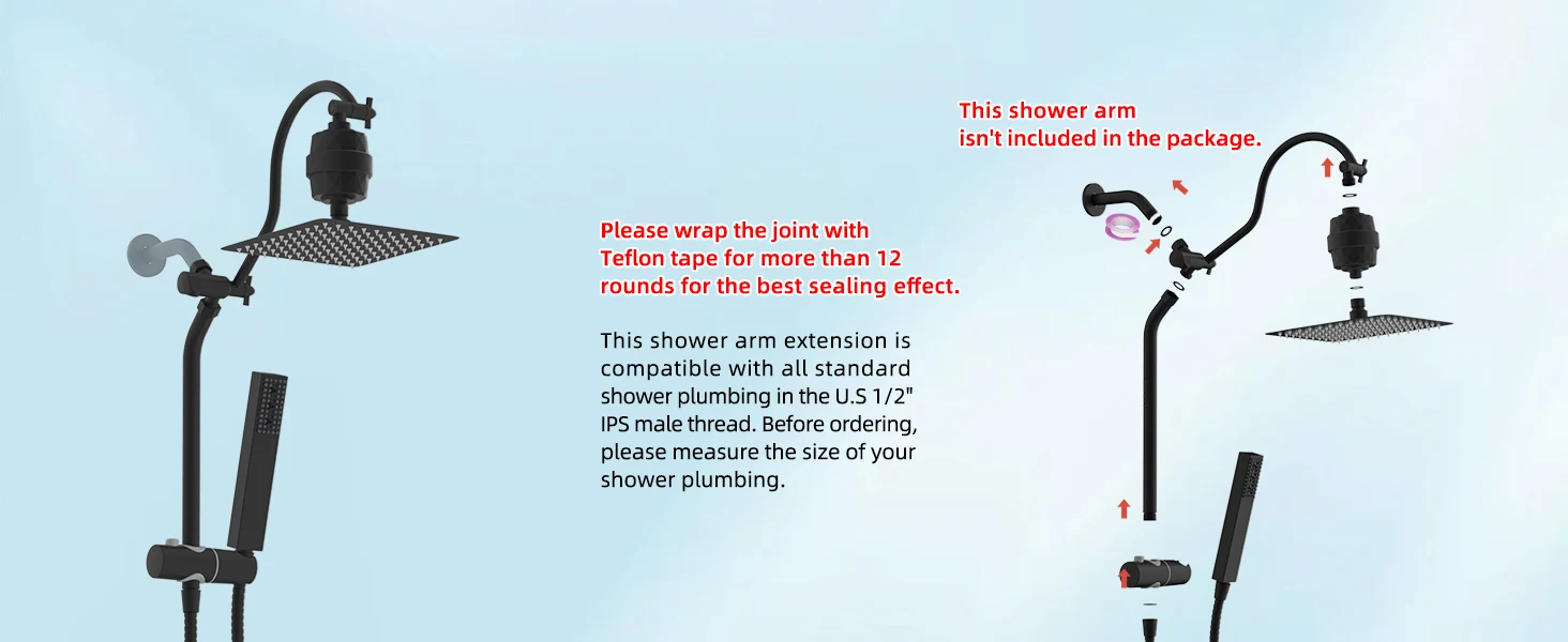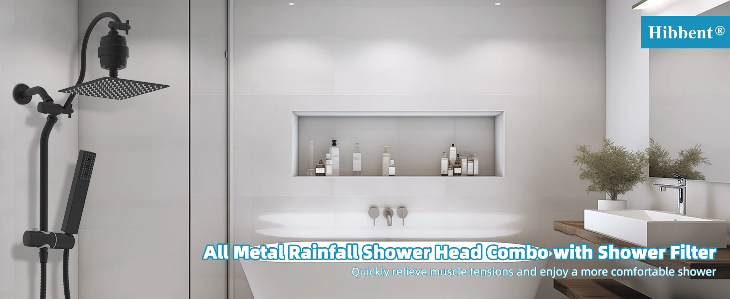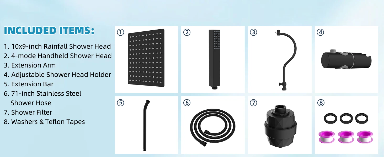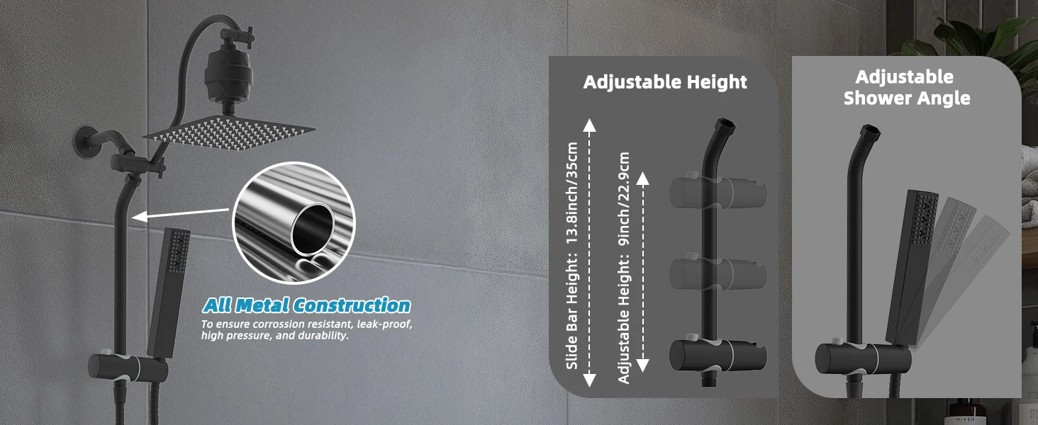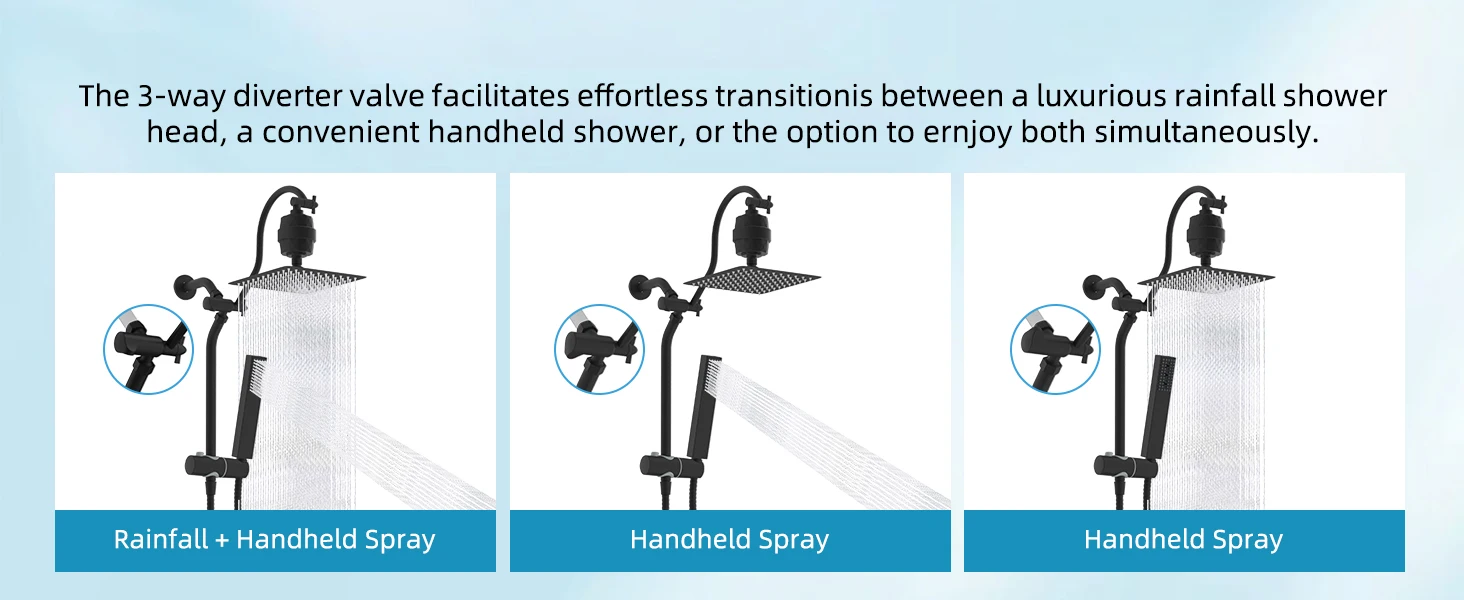 10” Filtered Rainfall Shower Head, High Pressure Showerhead combo with 4-mode Handheld Spray, 12” Extension Arm