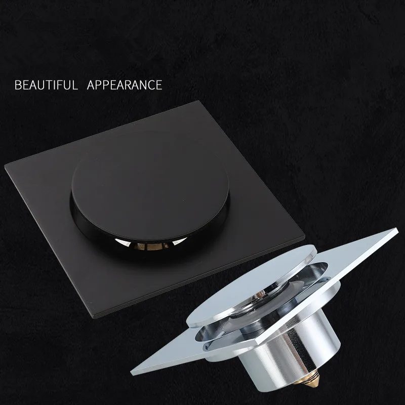 10X10 CM Floor Drains Black/Chrome Brass Shower Floor Drain Bathroom Deodorant Square Floor Drain Strainer Cover Grate Waste