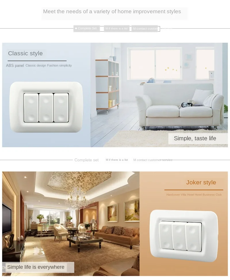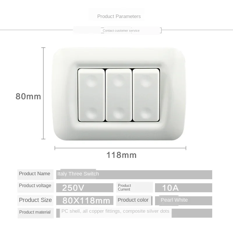 118mm 3Gang Italy Isreal Standard Household Wall Electrical 1Way Switch White PC Safety flame-retardant Panel