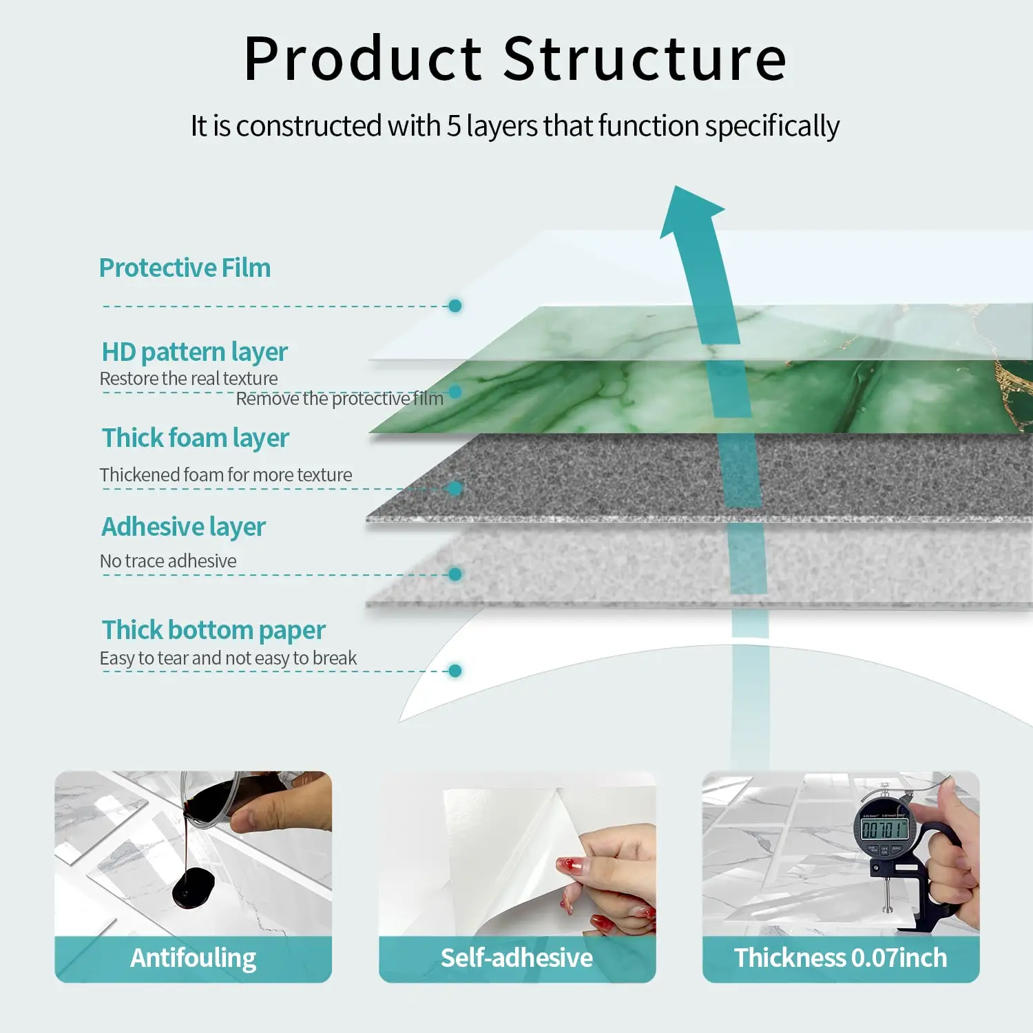 16/32/64PCS Marble Thicker Self-Adhesive Tile Stickers Waterproof Kitchen and Bathroom Minimalist Art 3D Wall Sticker Wallpaper