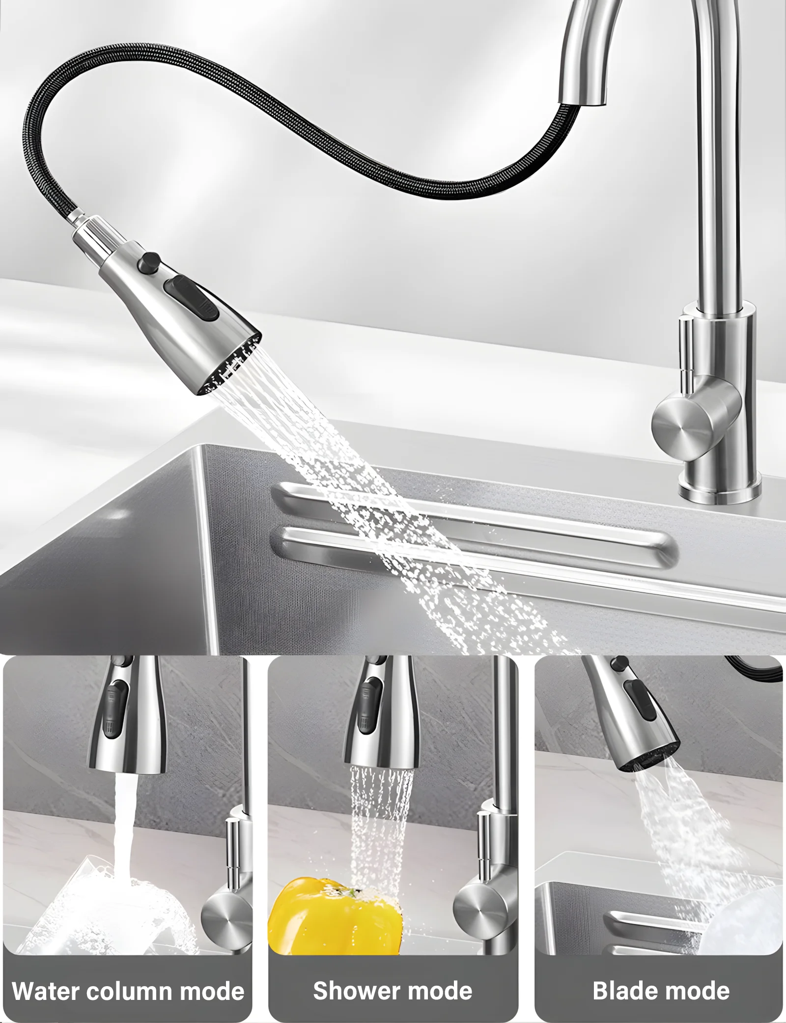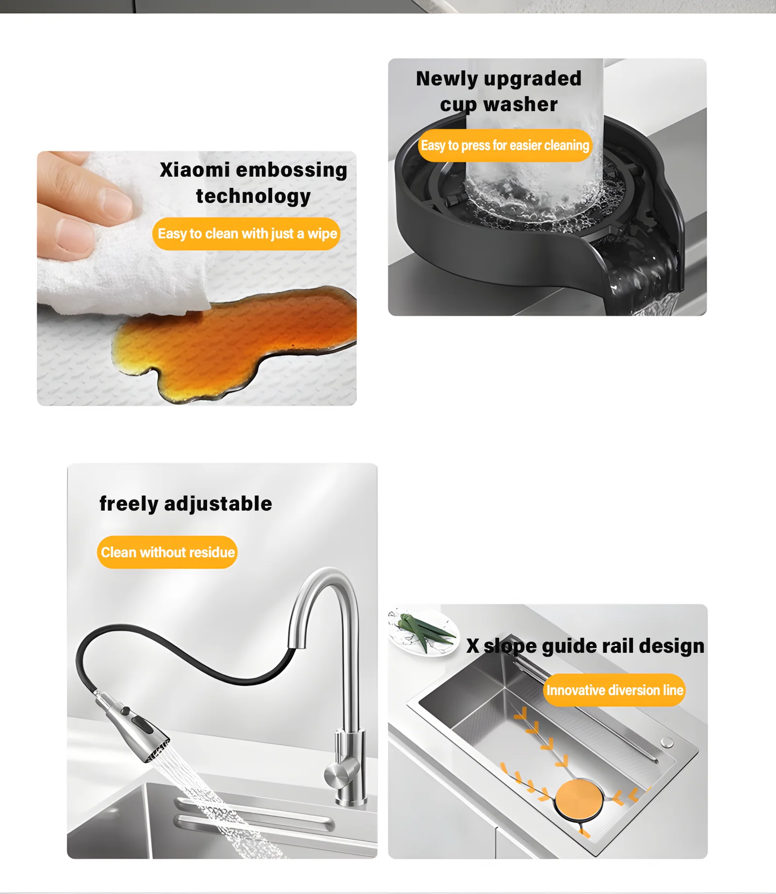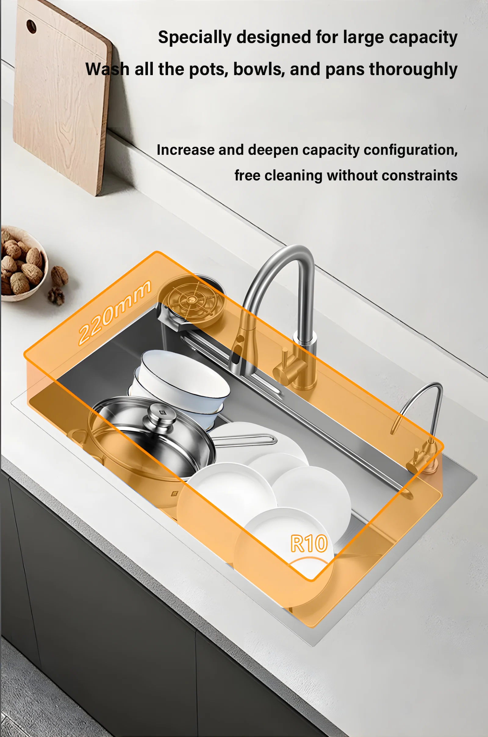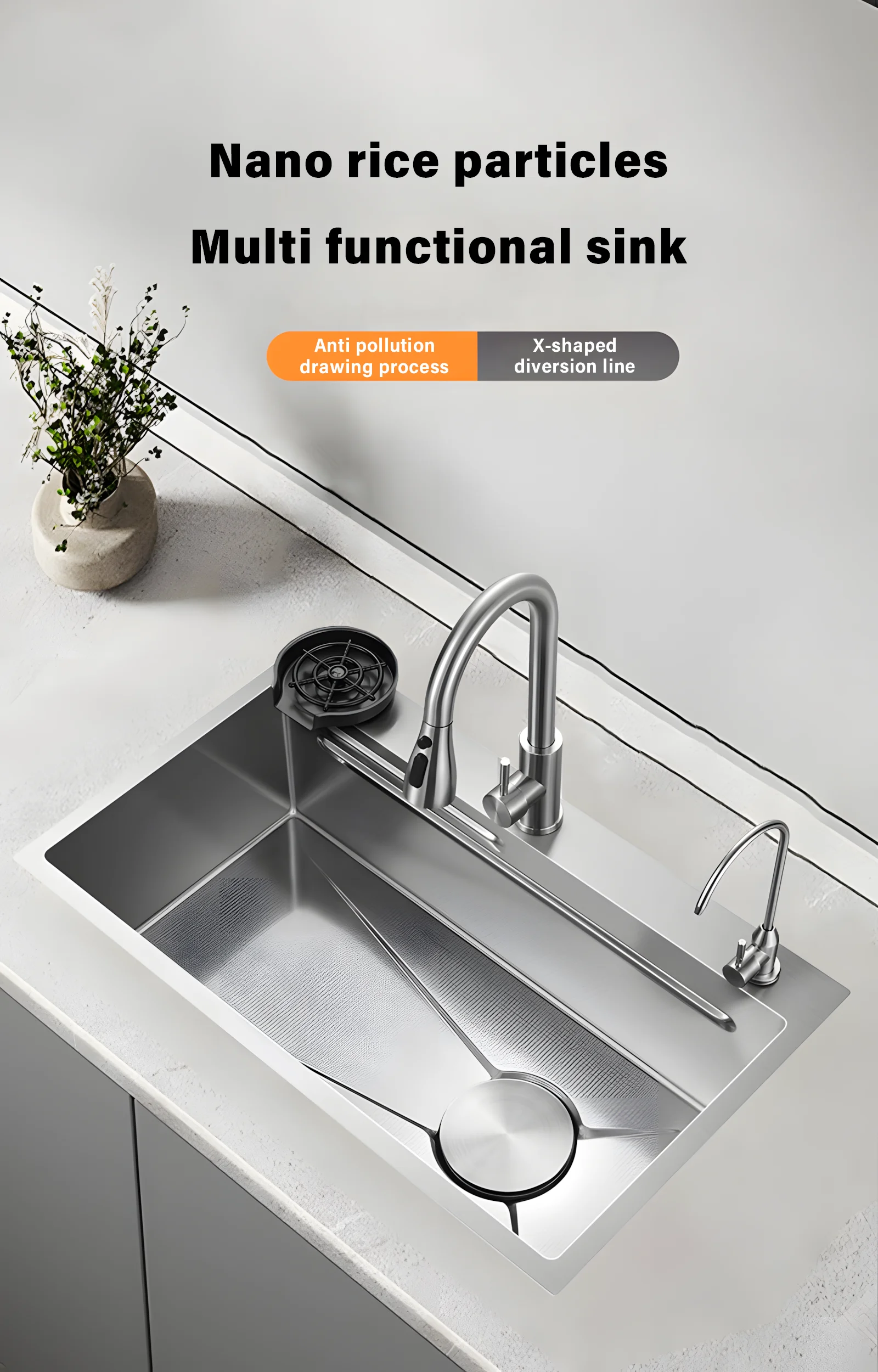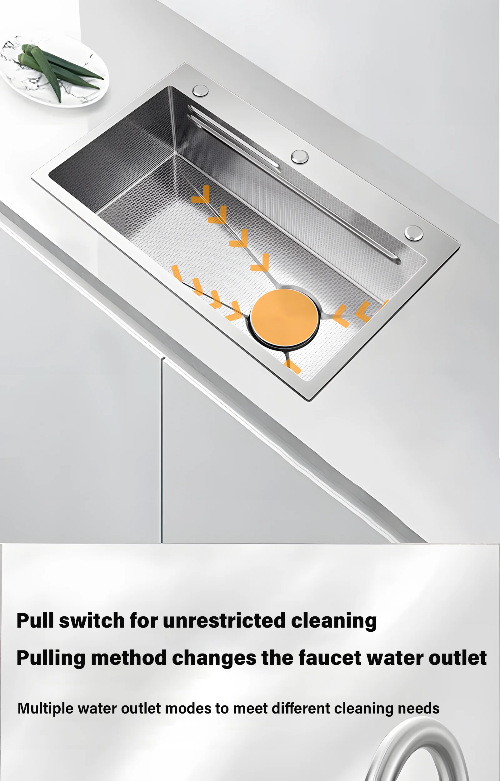Embossed Honeycomb Flying Rain Waterfall Sink Handmade Kitchen 304 Stainless Steel Large Single Slot Vegetable Wash Basin Sink
