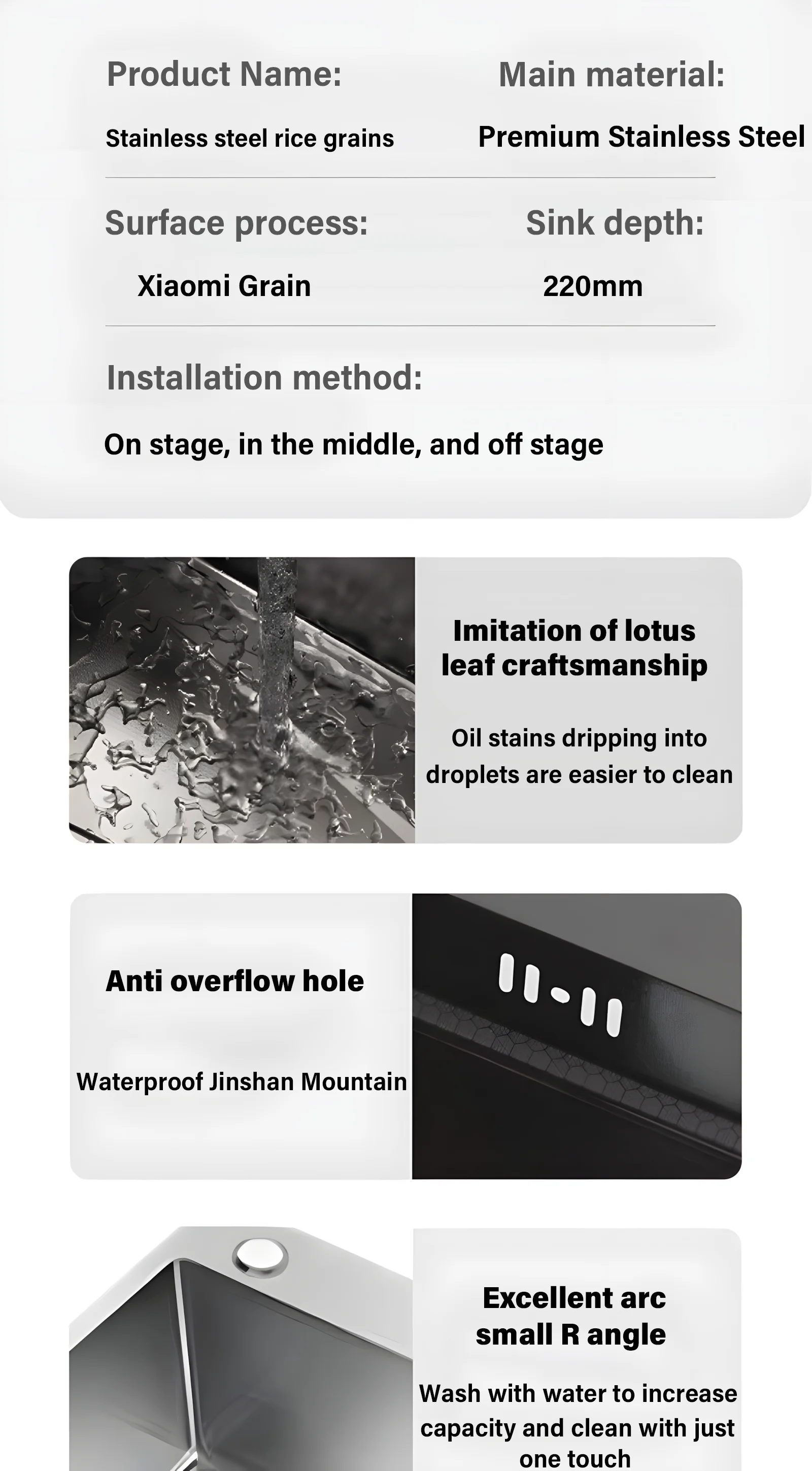 304 Stainless Steel Kitchen Sink Silver Embossed Large Single Slot Home Improvement Multifunction Wash Basin For Kitchen