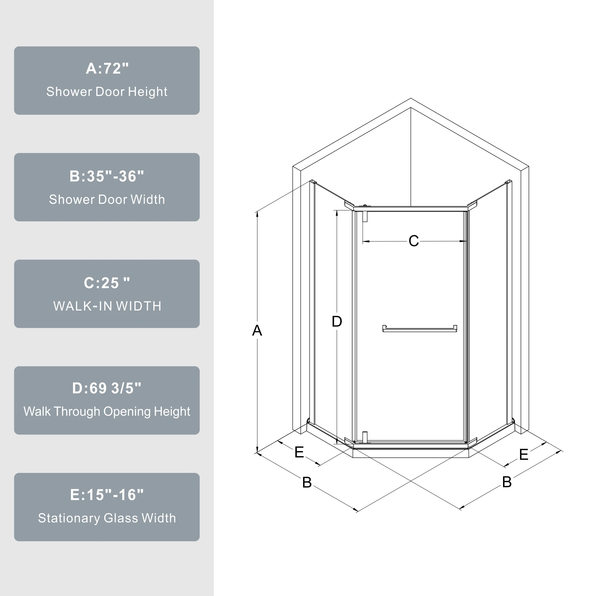 36 in.D x 36 in.W x 72 in.H Frameless Shower Door, Neo-Angle Corner Shower Enclosure with 1/4″ Clear Glass, Pivot Shower Doors