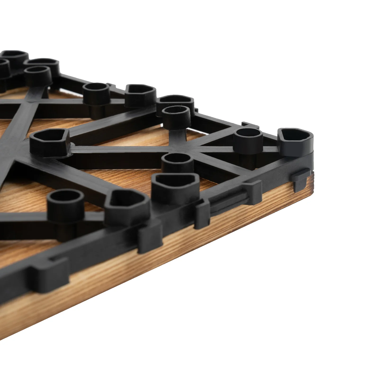 Hollow Backing Base: It’s fixed by stainless steel screws on the back of wood flooring tiles, offering greater stability. Â