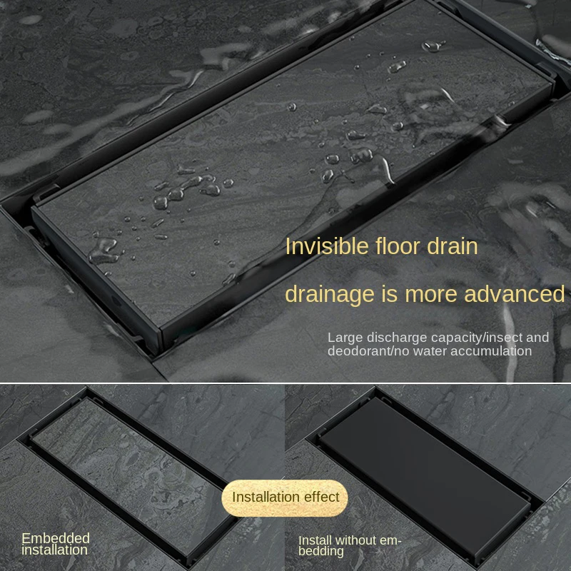 BAKALA Invisible Bathroom Floor Drain 20-120CM Square Waste Filter Drainage Anti-odor Shower Drain Strainer Kitchen Accessories