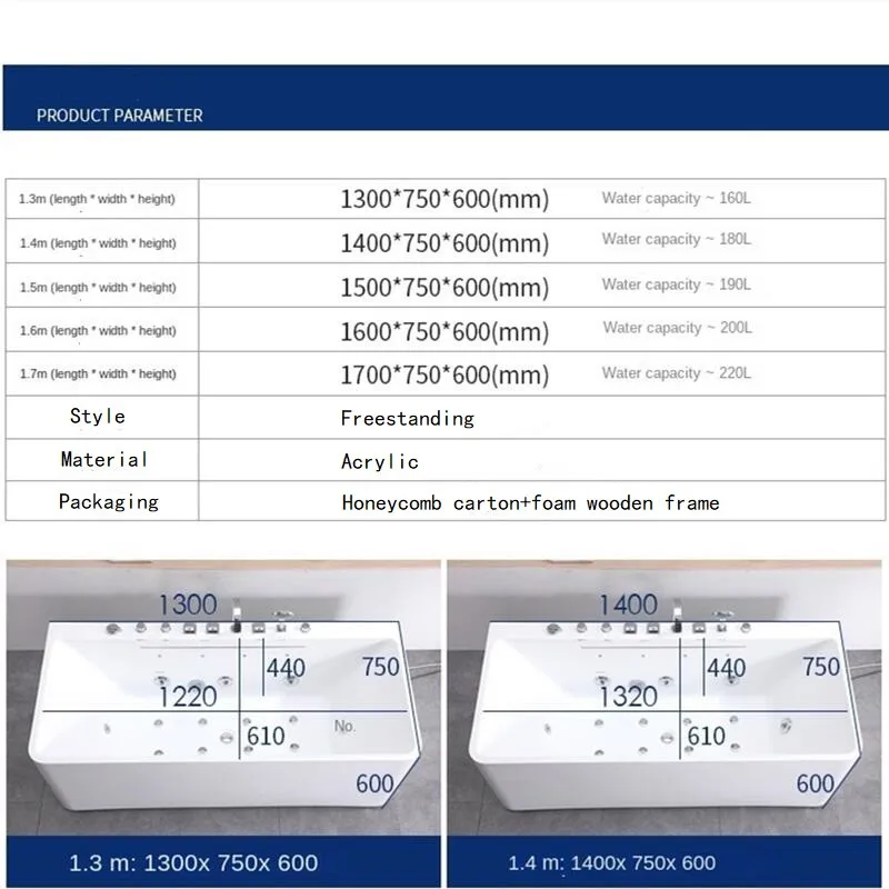- Component: Bathtub, drainage,Faucet and Overflow