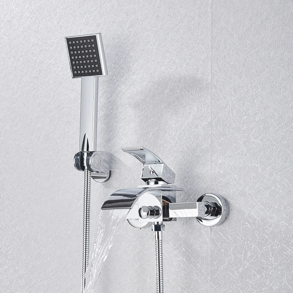 Gold Black Bathtub Faucet Waterfall Shower Faucet Wall Mounted Hot Cold Water Mixer For Bathroom Chrome Bath Shower Set System