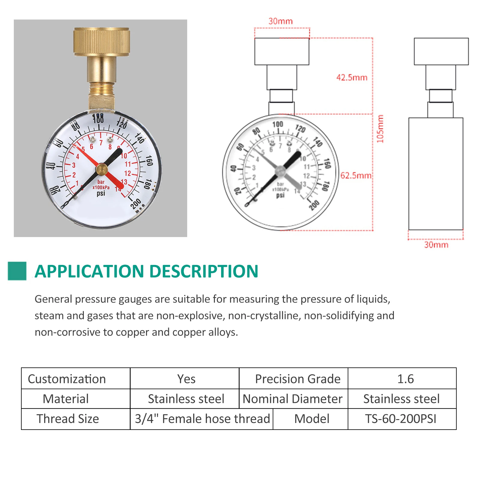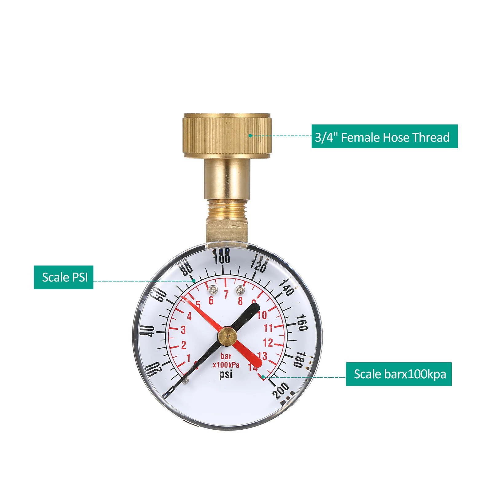 Lepmerk 2- 1/2” Water Pressure Test Pressure Gauge Gauge 3/4” Female Hose Thread 0-200 PSI Psi/bar Scale with kPa guidance
