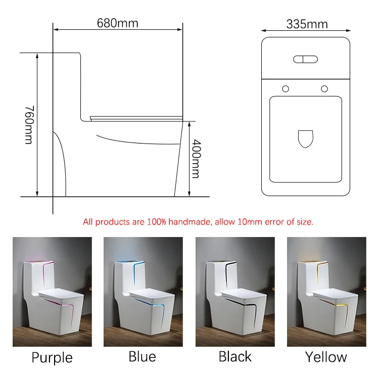 Multicolor Ceramic Sanitary Ware Toilet Square Shape Water Closet Bathroom Elongated Toilet Bowl Floor Mounted One Piece Toilet