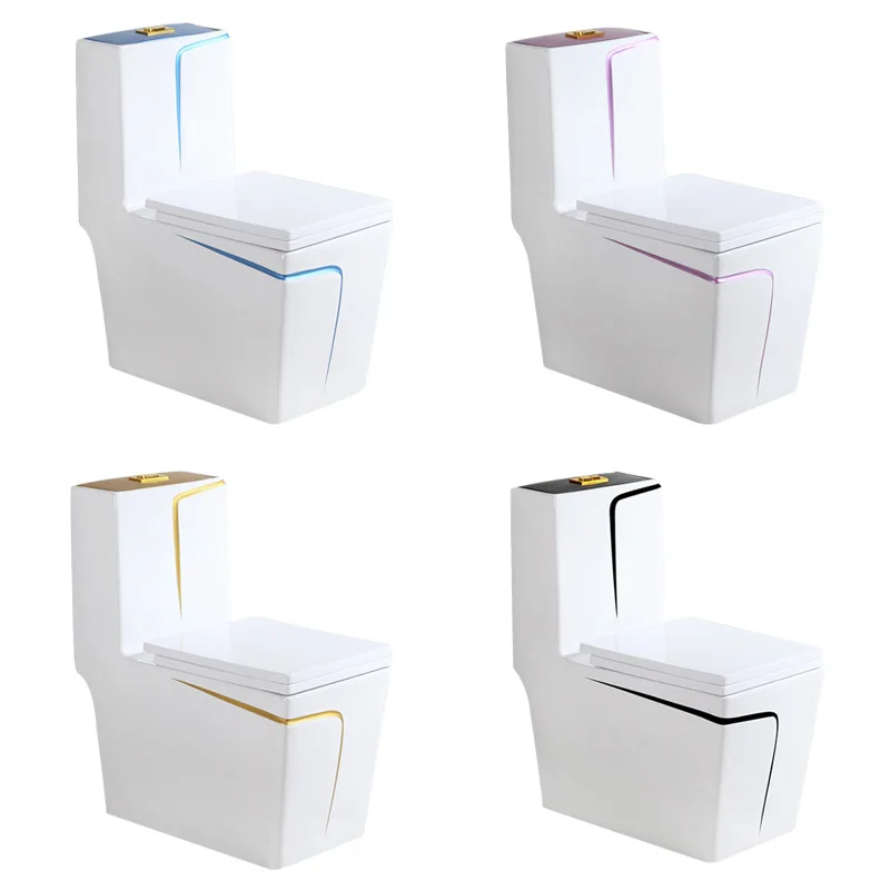 Multicolor Ceramic Sanitary Ware Toilet Square Shape Water Closet Bathroom Elongated Toilet Bowl Floor Mounted One Piece Toilet