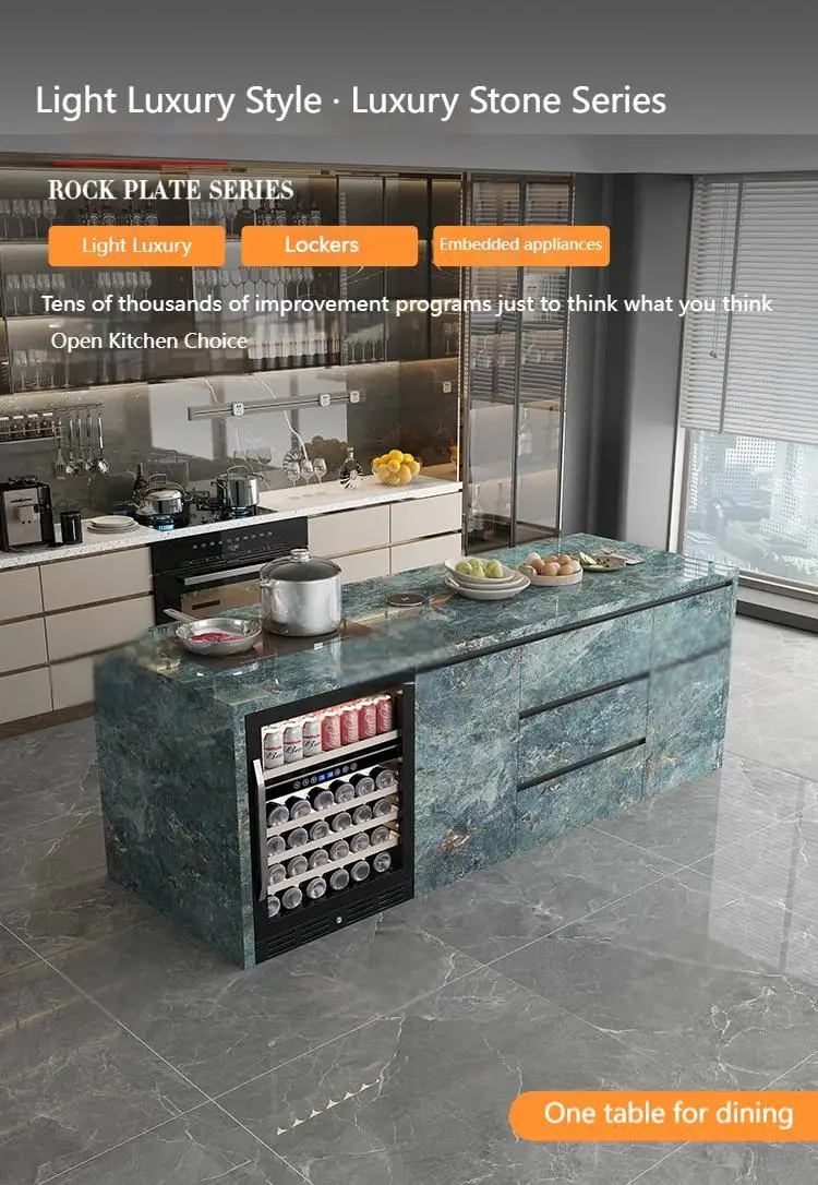 Natural Marble Kitchen Island with Storage & Wine Cooler, Customizable Luxury Cabinet, Waterproof Countertop for Spacious Home