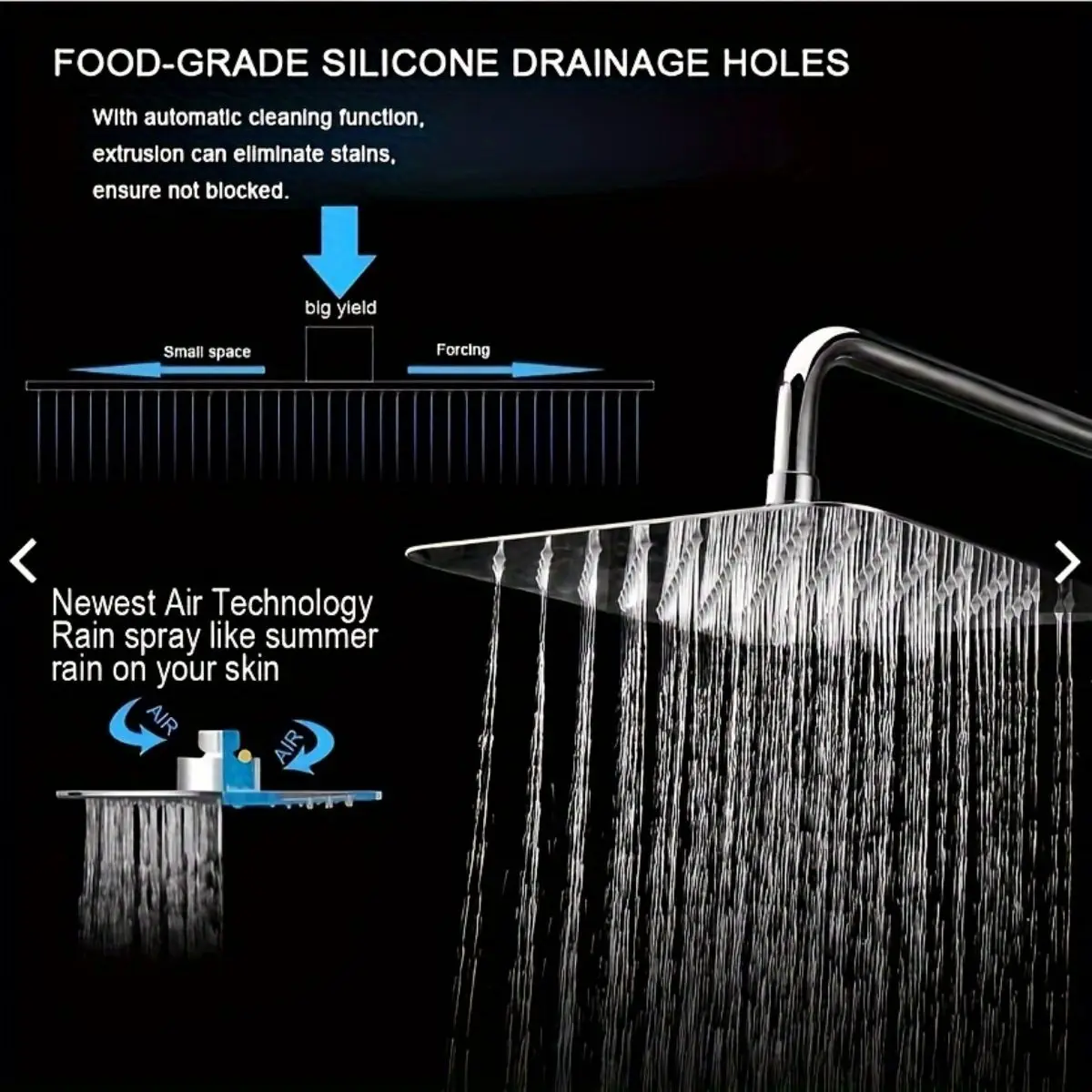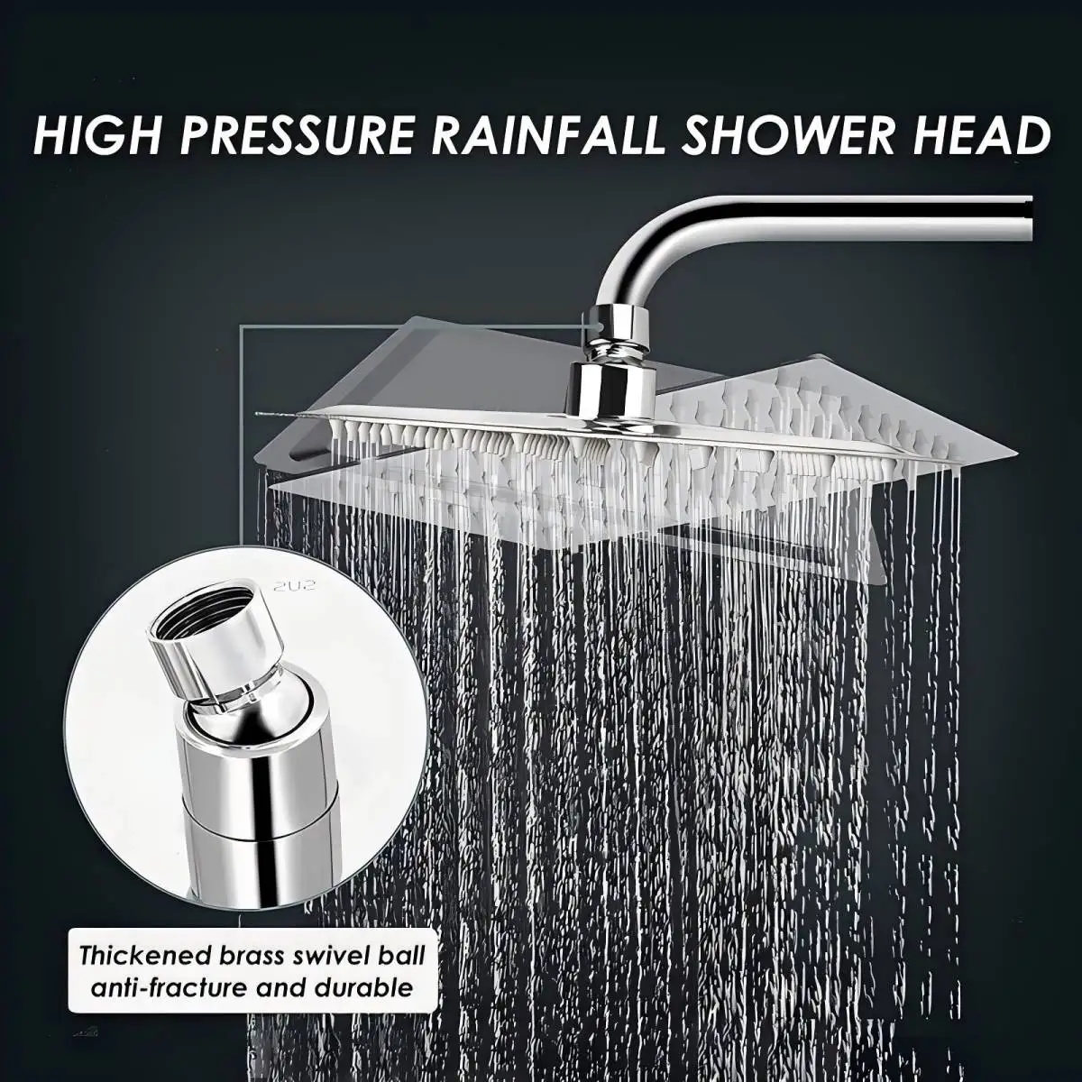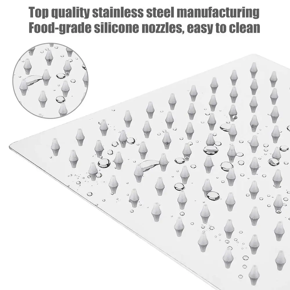8" 10" 12" Stainless Steel High Pressure Rainfall Shower Head Large Flow Square Pressure Boosting Design Spa Bathroom Showerhead