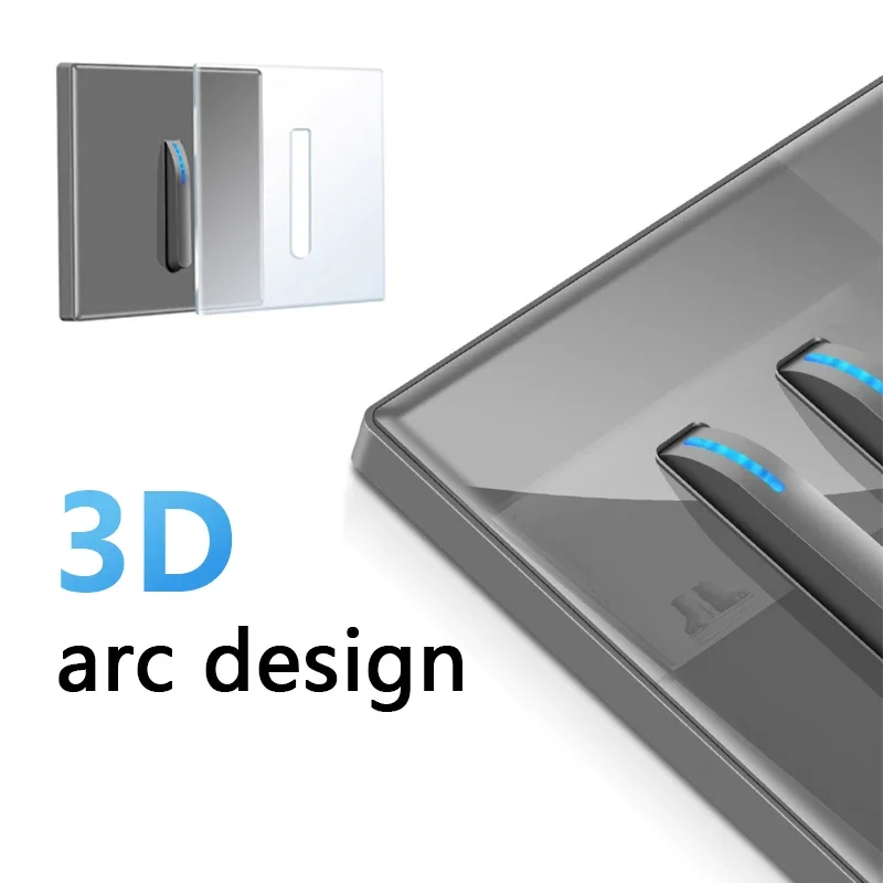 Wall Light Switch Panel Tempered Glass International Switch Self-reset 1/2/3/4 Gang 1/2 Way LED Indicator Piano Key Wall Panel