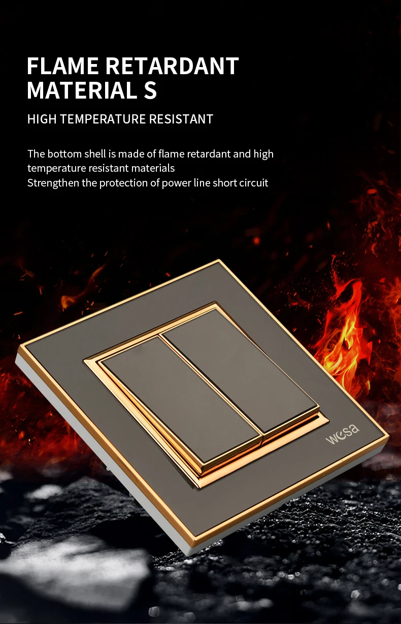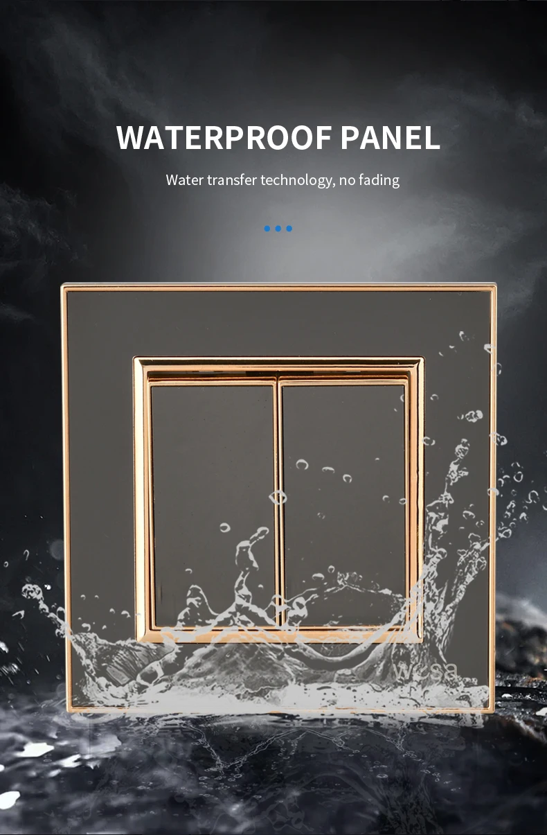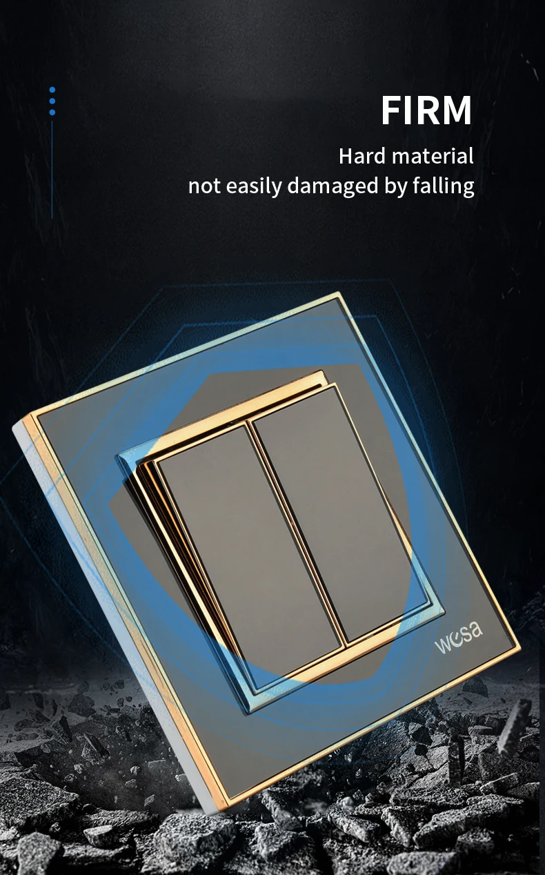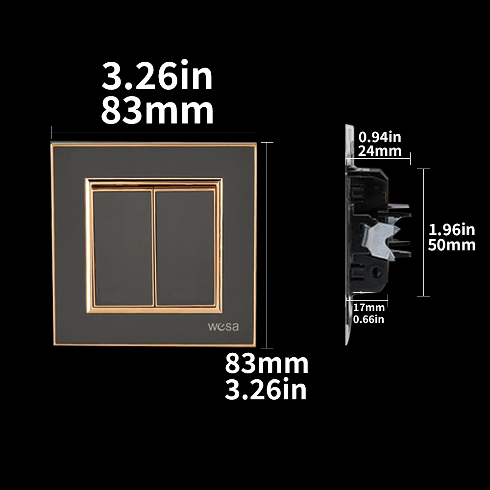 WESA Black Mirror Acrylic Wall Light Switch Flame retardant Panel Button 2 Gang 1 Way Wall Rocker Double Switch On/Off AC 250V
